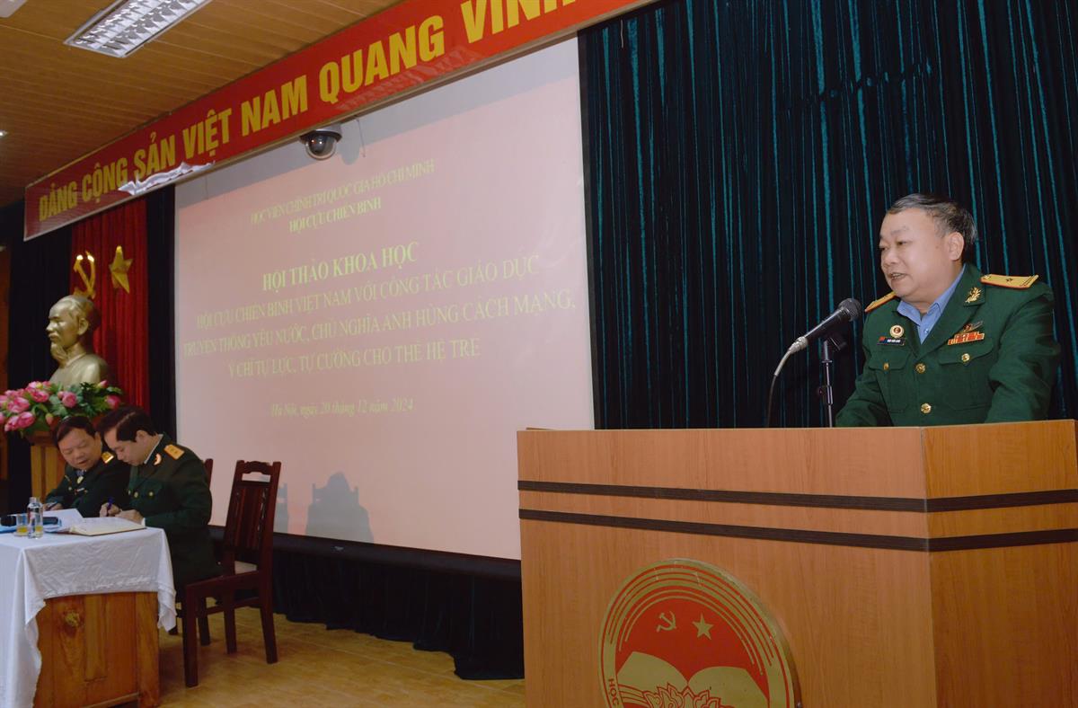 Phát biểu khai mạc Hội thảo, PGS,TS Trần Minh Trưởng, Phó Chủ tịch Hội Cựu chiến binh Học viện Chính trị quốc gia Hồ Chí Minh cho biết, khắc ghi lời dạy của Chủ tịch Hồ Chí Minh "Bồi dưỡng thế hệ cách mạng cho đời sau là một việc làm rất quan trọng và cần thiết", những năm qua, bằng tình cảm và trách nhiệm của mình, Hội Chiến binh Việt Nam và hội cựu chiến binh các cấp đã thường xuyên phối hợp chặt chẽ với Đoàn Thanh niên Cộng sản Hồ Chí Minh và các đoàn thể tích cực tham gia giáo dục truyền thống yêu nước, chủ nghĩa anh hùng cách mạng, ý thức tự lực, tự cường cho thế hệ trẻ. Đồng thời, định hướng mục tiêu, lý tưởng, lối sống, hình thành nếp sống văn hóa lành mạnh cho thanh niên.