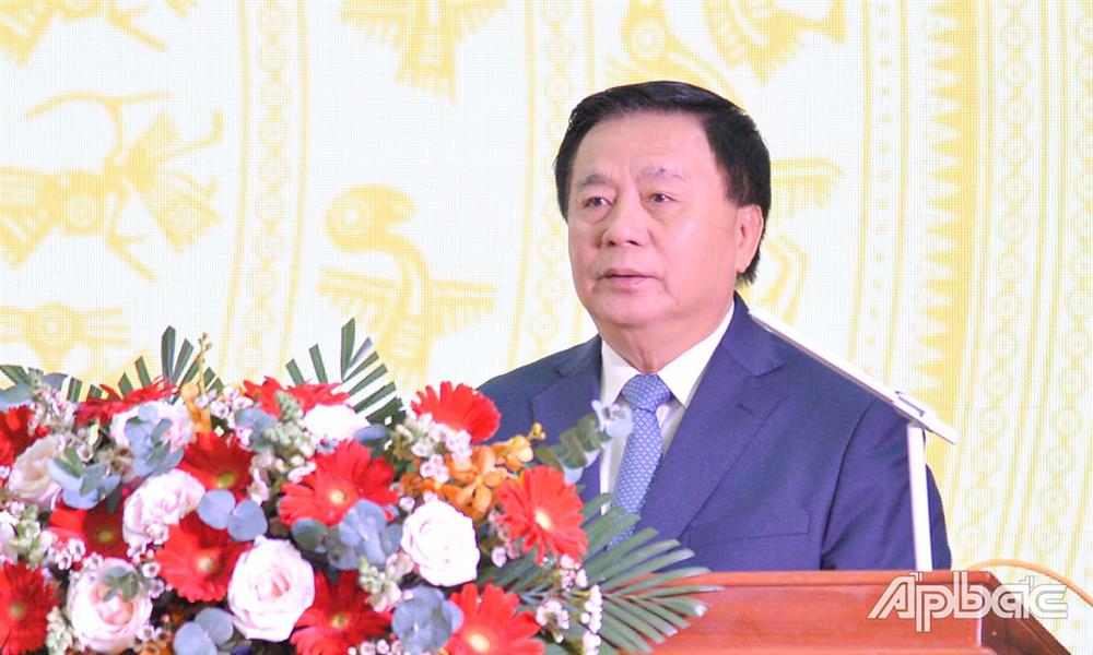 Đến dự có đồng chí Nguyễn Xuân Thắng, Ủy viên Bộ Chính trị, Giám đốc Học viện Chính trị quốc gia Hồ Chí Minh, Chủ tịch Hội đồng Lý luận Trung ương; đồng chí Nguyễn Văn Danh, Ủy viên Trung ương Đảng, Bí thư Tỉnh ủy, Trưởng đoàn đại biểu Quốc hội đơn vị tỉnh Tiền Giang.